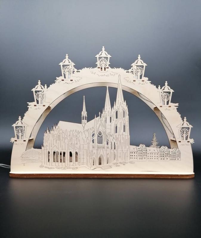 Lieferumfang: Schwibbogen fertig montiert mit 10er LED Lichterkette in einem Karton verpackt